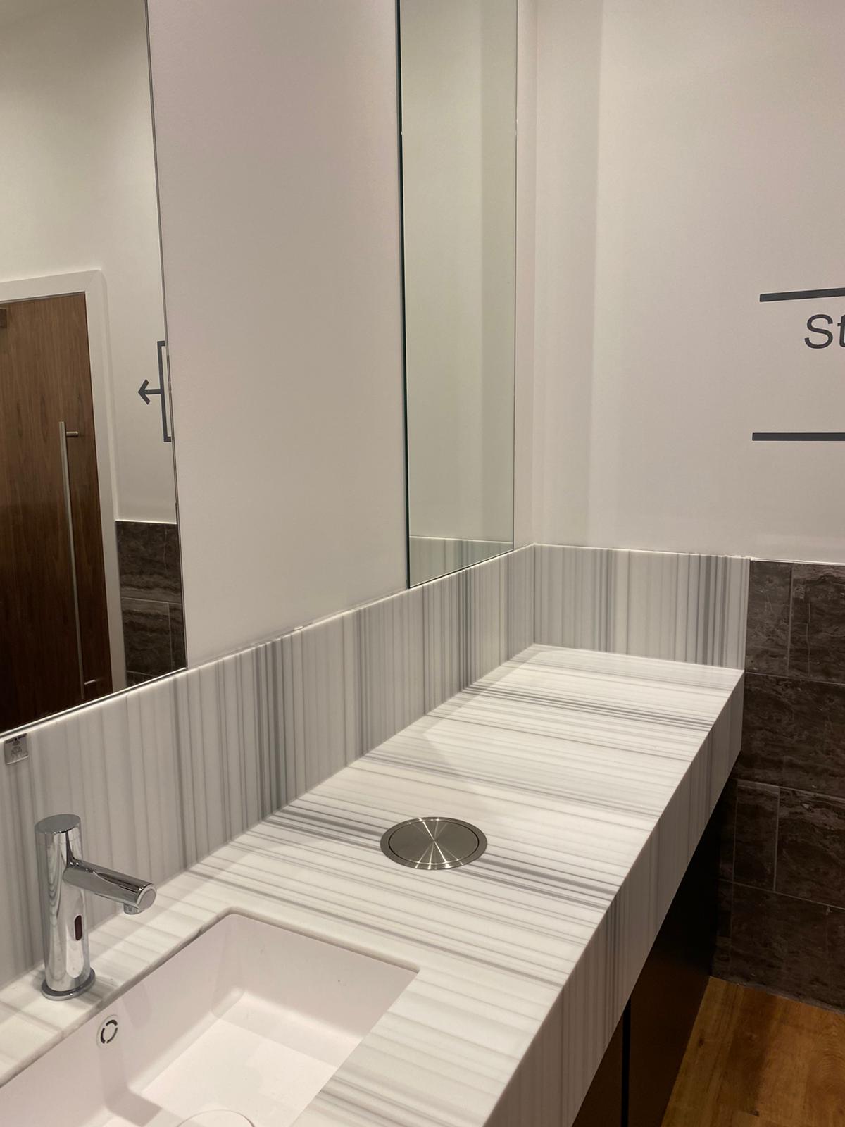 We designed, manufactured and supplied various products for the gym, spa, changing and reception areas using our signature; Nu-Lam Integrated Plumbing System (IPS) panels, Nu-Solid vanity units, laminate fabricated reception cabinets, manicure unit and various gym storage units from our production factory in Aberdeen.